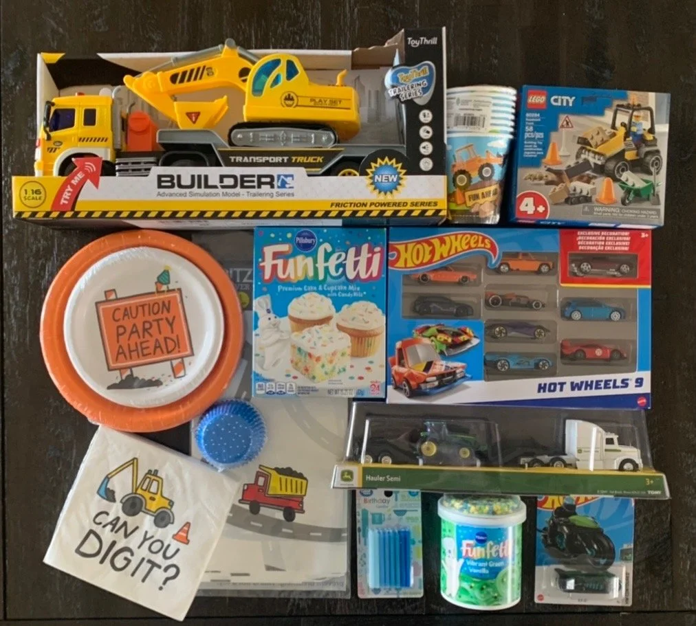 Every child accepted into our program will receive a Birthday Kit. Each Birthday Kit consists of items designed to provide a unique birthday celebration. Additional information provided by the parent(s) / legal guardian will help us specialize the Birthday Kit for each child. Below is a sample list of items we supply: